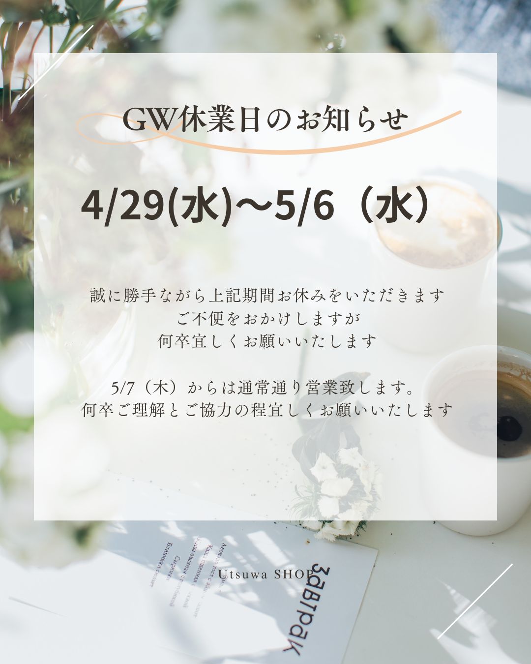 【GW休業のお知らせ】