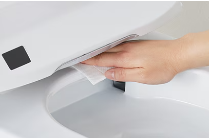 便座が真上に上がる: リモコン操作で、便器と便座の間の「あの届かない隙間」が4〜5cmガバッと上がります。