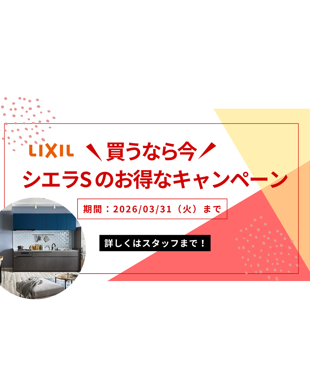 この時期にシエラSでのリフォームをご検討されているなら、ビルトイン機器の同時購入キャンペーンをぜひ活用されることをおすすめします!!